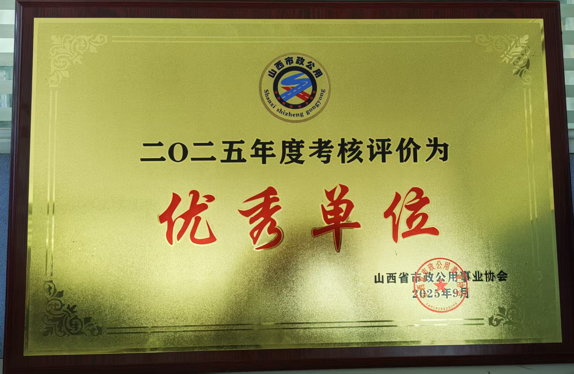 2025年9月公司被授予二0二五年度考核評(píng)價(jià)為優(yōu)秀